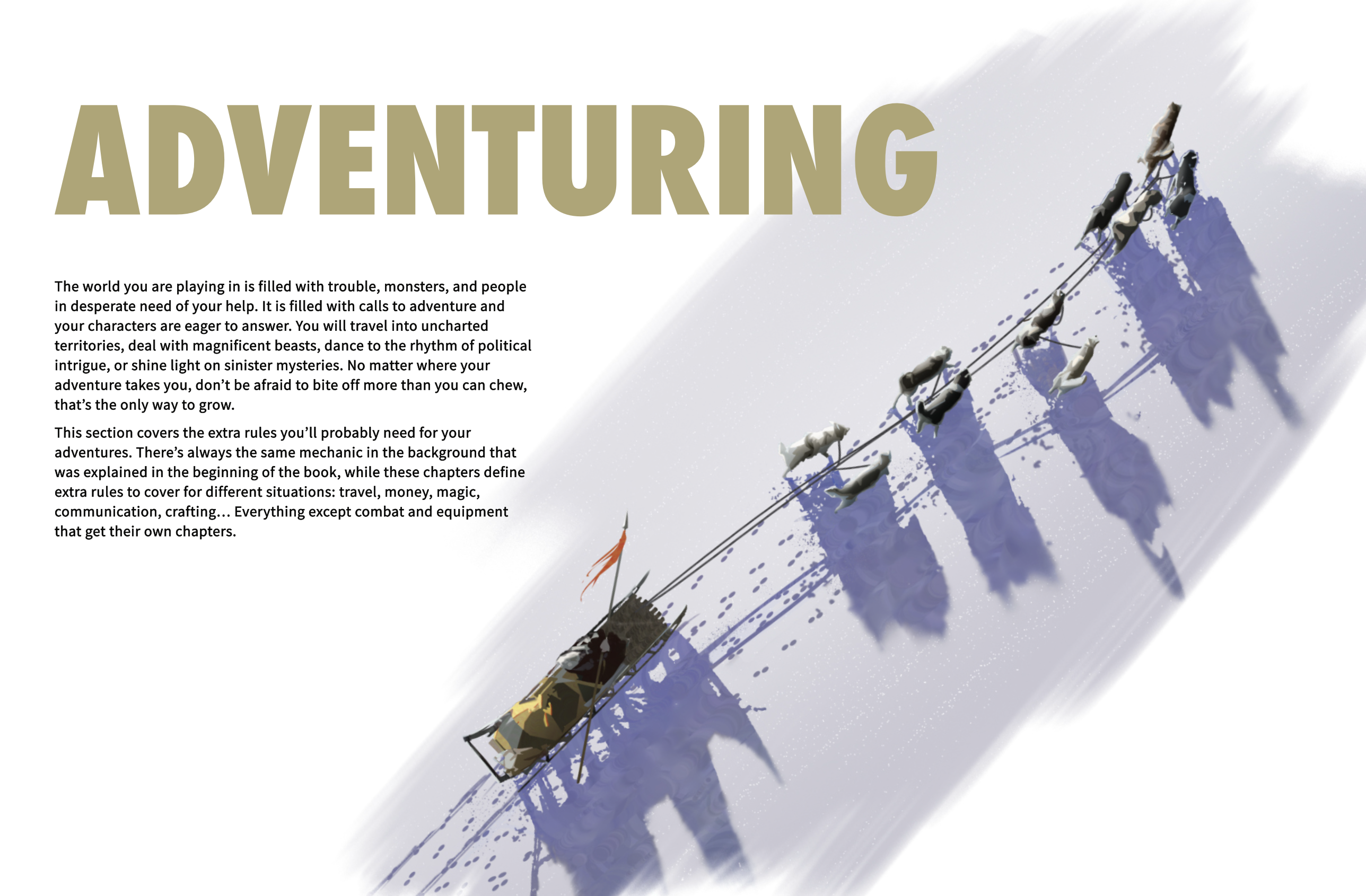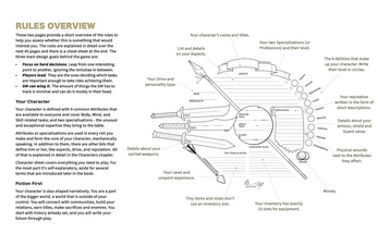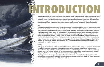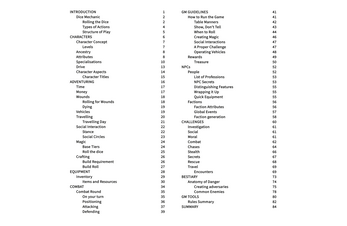 - The GM section provides guidelines and tables to help you run your games smoothly. It elaborates on the concepts used in the game, but also provides systems to easily create non-playing characters, factions, monsters etc.
